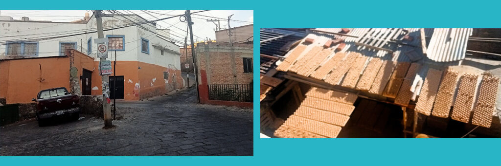 Lo que queda del Puente de San Clemente, justo en la confluencia con San Luisito y Barrio Nuevo. Siguiente imagen: piezas de alfarería secándose al sol en San Luisito.