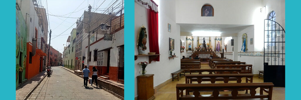 La Calle de la Soledad, donde se localiza el Templo de Jesús Divino Preso (derecha).