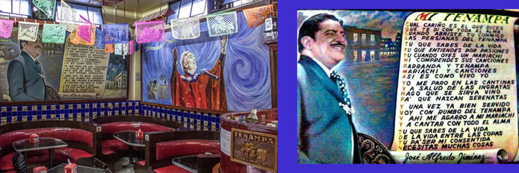 En el Salón Tenampa, de Garibaldi —que este año cumple su primer centenario— están las imágenes de “La Chamana” con su poncho rojo y José Alfredo y su sombrero. Ambos se sentaban en el lado izquierdo de la entrada. Se conserva la mesa donde ambos acostumbraban tomar la copa y pasar no horas enteras, sino días cantando y brindando con tequila.
