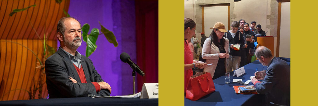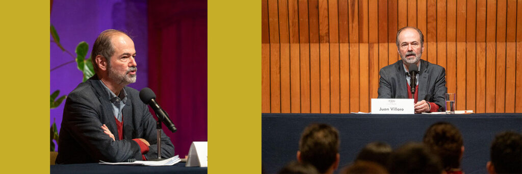El escritor Juan Villoro (Ciudad de México, 24 de septiembre de 1956) habló con pasión y conocimiento de causa al dictar la conferencia “El aprendizaje de la soledad: De Daniel Defoe a Michel Tournier”, primera de la trilogía de charlas del ciclo El desafío del otro. Náufragos, exiliados y migrantes en la literatura en la sede El Colegio Nacional (ECN).