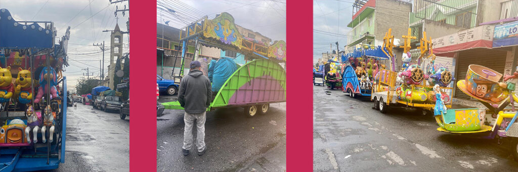 Ciudad Lago y Ampliación Ciudad Lago son dos colonias mexiquenses colindantes con la Ciudad de México. Cada año, por estas fechas, decenas de trabajadores, muchos de ellos familiares, llegan con sus caravanas de muchos camiones, camionetas y remolques para instalar su feria. Así viajan por gran parte del país, llevando alegría a toda la gente.