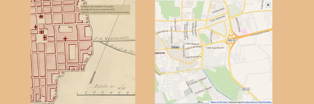 Silao en 1860 y Silao en la actualidad (Mapas de Wikimedia).