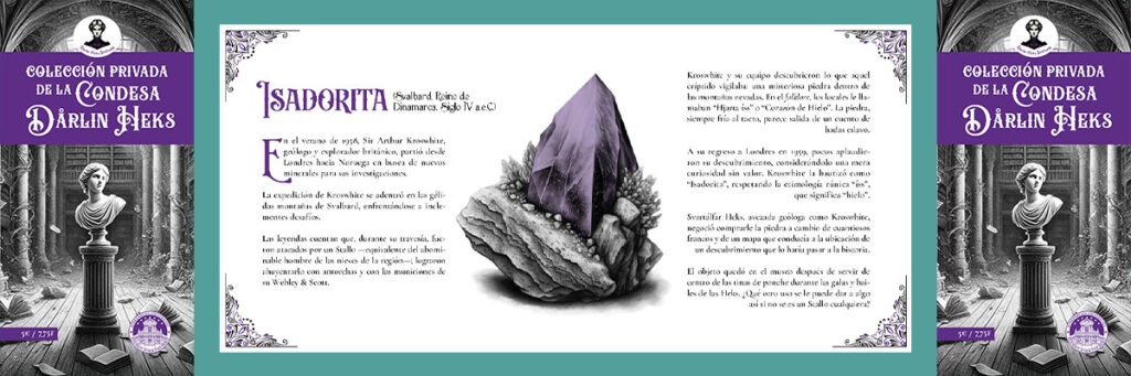 Así es como descubriremos la misteriosa piedra que habita en las montañas nevadas de Svalbard, a la que los locales han bautizado como Corazón de hielo, por su eterna frialdad. O el libro encuadernado en cuero que un experimentado alquimista creó poniendo especial cuidado en el sol brillante que ostenta la portada, y que por cuestiones del destino fue atacado después por las diminutas criaturas devoradoras de palabras.