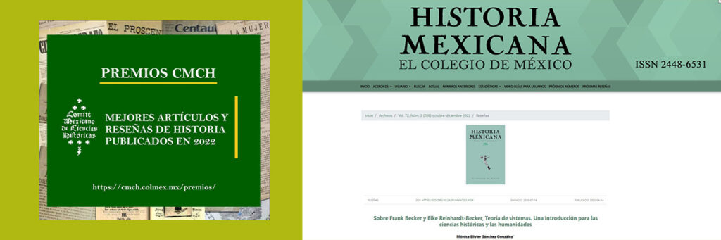 El prestigiado Comité Mexicano de Ciencias Históricas (CMCH) reconoció el trabajo académico de la investigadora Mónica Eliver Sánchez González, quien publicó la reseña “Sobre Frank Becker y Elke Reinhardt-Becker, Teoría de sistemas. Una introducción para las ciencias históricas y las humanidades”.