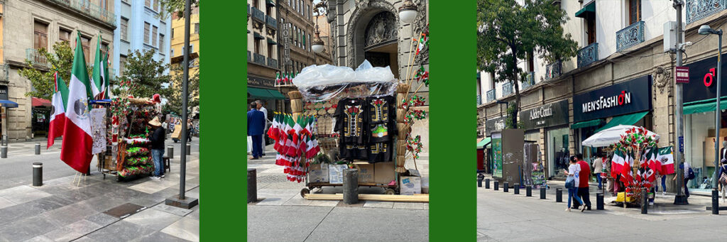 Los principales compradores, explicó, son las personas mayores y los adultos de mediana edad si es que son padres de familia. También los dueños de negocios, para adornar sus escaparates. Los 70 puestos con permiso ofrecen productos ciento por ciento hechos en México, aunque en algunas tiendas se comercian banderas de México hechas en China.