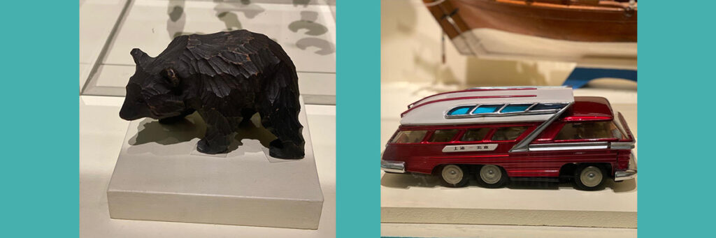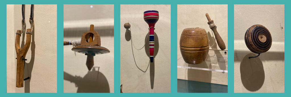 Hay muñecos kokeshi de Japón, matrioshkas rusas, veleros de maqueta de Catar y Grecia, móviles de plomo de Alemania, figuras zoomorfas esquimales talladas en piedra, juegos de cocina y títeres de guante de la República Checa, un Al-Sig (juego tradicional de la República Árabe Saharaui), y juguetes mexicanos como la pirinola, balero y el yoyo.