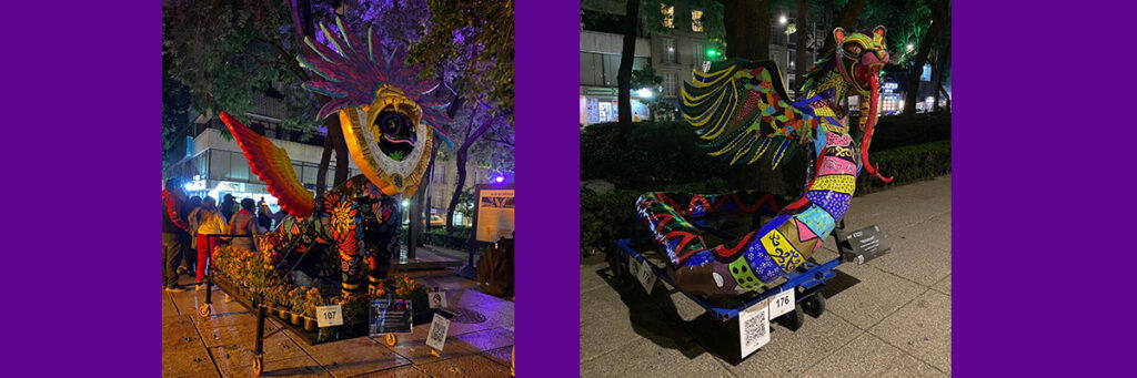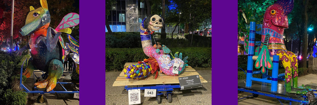 Las figuras se encuentran instaladas en ambas aceras del Paseo de la Reforma, desde la glorieta de la Columna de la Independencia hasta la Estela de Luz, frente a la Puerta de los Leones del Bosque de Chapultepec. Allí permanecerán hasta el próximo domingo 9 de noviembre, como parte de las celebraciones gratuitas en la capital por el Día de Muertos.