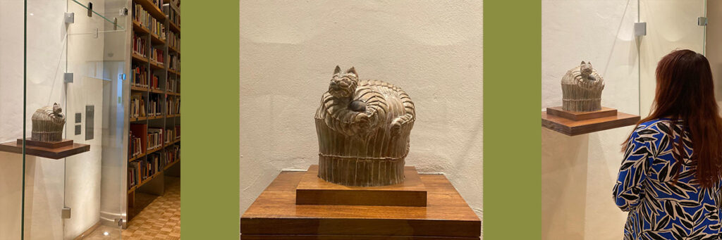 Lo anterior, porque las cenizas del escritor, cronista, ensayista y luchador social están en la Sala de Lectura en el cuarto piso del Museo del Estanquillo. Están en la “Gaturna” que el artista plástico mexicano Francisco Toledo (1940-2019) diseñó y realizó con especial cariño para su amigo Monsiváis. ¿”Gaturna”? Sí, una urna fúnebre con forma de gatito.