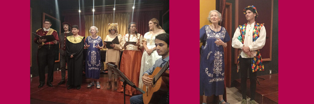 El evento del día que la entrevisté era un recital y desfile de vestuario hecho por Kate para las obras montadas por la compañía. El objetivo fue recaudar fondos para los futuros proyectos. Los bocadillos fueron donados, distintas rifas llamaban a participar y una subasta silenciosa de obras de arte se llevaba a cabo en la parte trasera del auditorio del Foro Cultural 81. Todo, bajo la organización de Vanja Kirova.