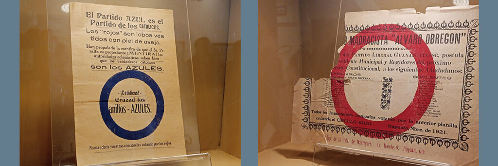 Un volante de las elecciones de 1921 decía lo siguiente: “El Partido Azul es el Partido de los Católicos. Los «rojos» son lobos vestidos con piel de oveja. Han propalado la mentira de que el Sr. Peralta es protestante ¡MENTIRA! Las autoridades eclesiásticas saben bien que los verdaderos católicos son los AZULES”.