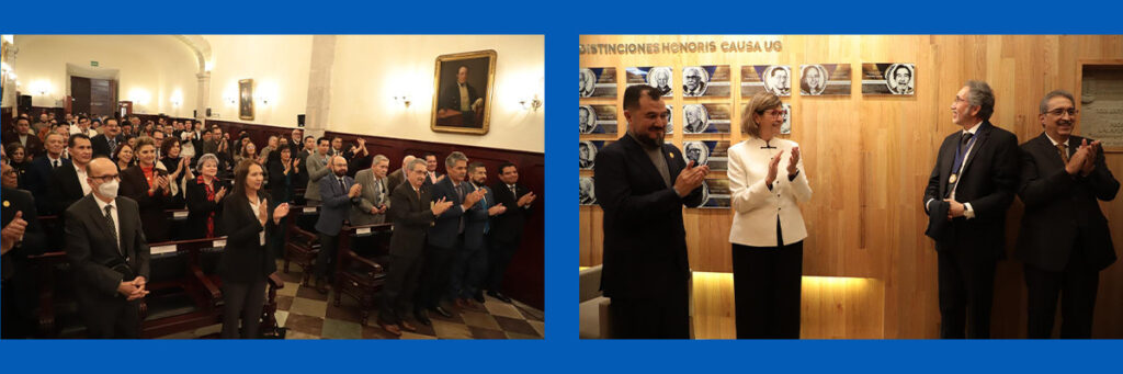 Además de valorar públicamente su producción y la formación de generaciones científicas, la Dra. Gómez López destacó la sensibilidad, la ética y la calidez humana, cualidades que hacen del Dr. Jiménez Gutiérrez un referente en México y el mundo, marcando un legado que se ha extendido a diversas universidades y centros de investigación, por lo que, afirmó, la UG se honra al otorgarle su máxima distinción, incorporándolo a la comunidad universitaria como miembro honorario.