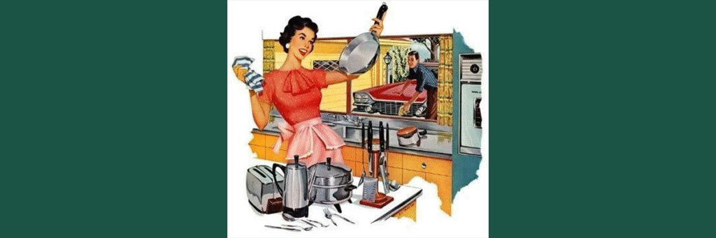 Amas de casa abrazando licuadoras, hombres presumiendo el automóvil último modelo, mujeres orgullosas de su estufa y sus trastes “rechinando de limpios”, el universo ´de los utensilios domésticos se convierte en el gran sueño hecho realidad de una sociedad de felicidad dominical.