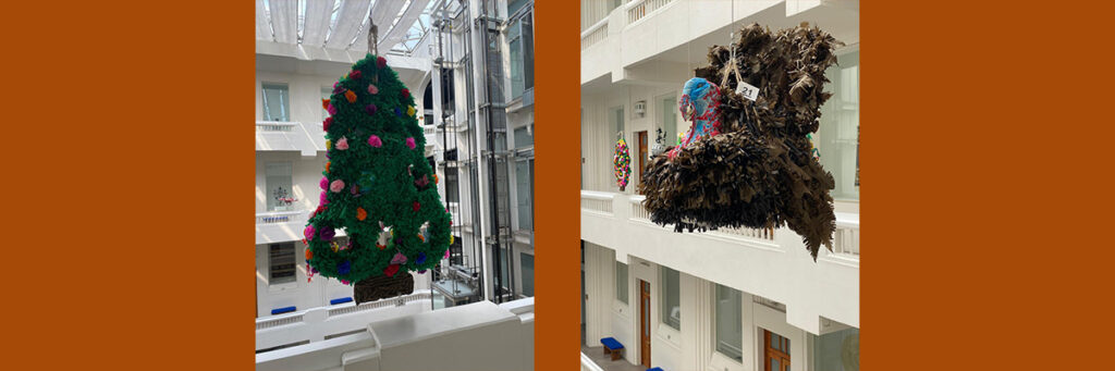 Colores, formas y materiales no tienen límite al momento de crear piñatas, como éstas, del Museo de Arte Popular. (Fotografías: Graciela Nájera Sánchez)