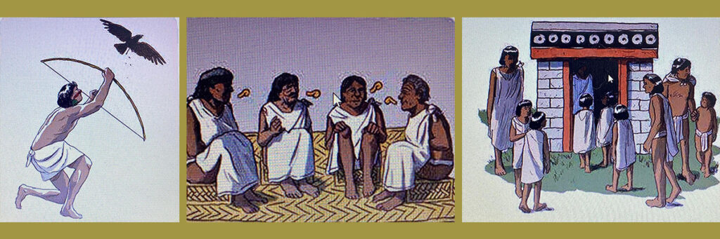 El primero narra el relato mítico de la migración de los mexicas desde Aztlan hasta la búsqueda del lugar prometido por su dios tutelar, Huitzilopochtli, y la construcción de la ciudad, mostrando la creación de sus cuatro grandes parcialidades y los 13 calpulli, y la organización del gobierno, como se ha enseñado desde hace décadas en las primarias.