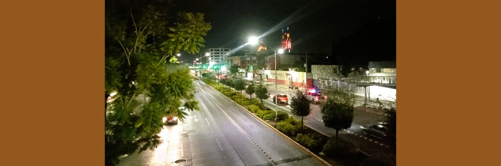 Vista nocturna del bulevar Adolfo López Mateos, eje vial de la ciudad.