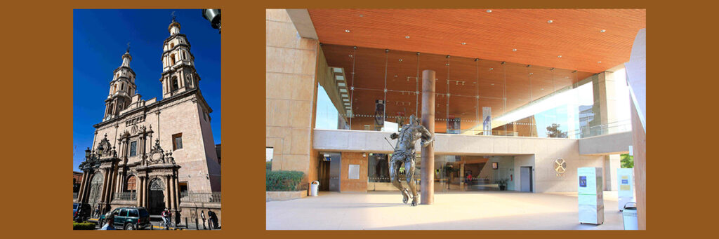 Metros adelante, a una cuadra de la Calle Francisco I. Madero, se encuentra el neoclásico Teatro Manuel Doblado que, si bien ha perdido primacía escénica desde la existencia del Teatro del Bicentenario, posee la magnificencia de su cantera color rosa. Muy cerca, la Catedral Metropolitana muestra huellas de dos etapas constructivas: iniciada en estilo barroco en 1746 por los jesuitas, para ser el Templo de La Compañía Nueva, cuando la orden fue expulsada de la Nueva España, en 1767, quedó sin terminar, hasta que en 1864 recomenzó a cargo del afamado y genial arquitecto Luis Long, con el resultado de que en la fachada pueden notarse dos colores distintos de piedra.