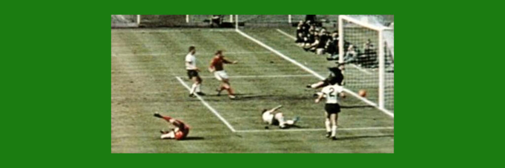 En tiempo extra, vino una jugada que aún se discute. Hurst recibió un centro en el área, dio media vuelta y soltó un riflazo que pegó en el horizontal, el balón pegó al parecer sobre la línea de meta y fue despejado. El público inglés gritó el gol, los alemanes reclamaron y el árbitro Dienst, confundido, fue a consultar al abanderado ruso Tofic Bakhramov, quien apuntó al centro del campo. Furiosos, los germanos se volcaron sobre el marco de Tilkowski, pero en un contragolpe Hurst soltó un balonazo que entró al marco para el 4-2, con parte de la cancha invadida ya por espectadores. Por fin, Inglaterra era campeón.