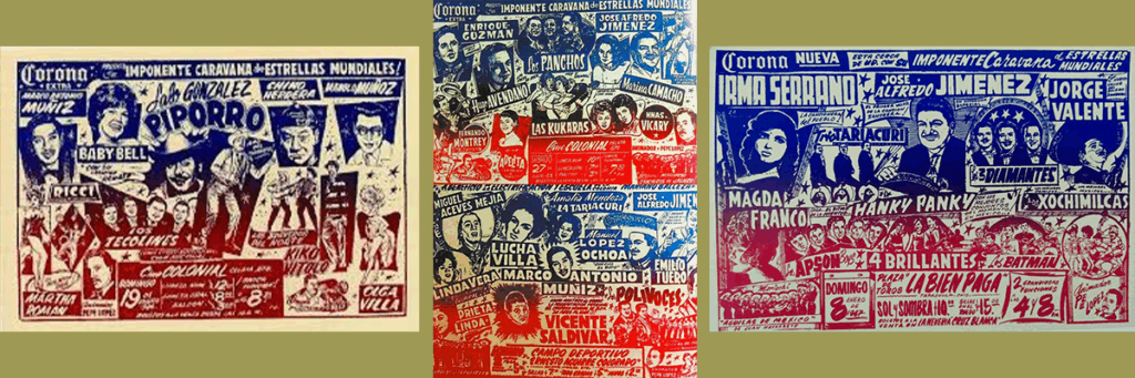 Actores y cantantes estaban en las películas y a veces en la televisión, pero no había como escucharlos en vivo, verlos de cerca, saludarles y, de ser posible, pedirles un autógrafo. Eso era posible gracias a las Caravanas Corona, un espectáculo itinerante que llevó a personajes de la talla de Pedro Infante, José Alfredo Jiménez, Cuco Sánchez, Toña la Negra, Javier Solís, María Victoria, Los Panchos, la Sonora Santanera, Irma Serrano, La Sonora Matancera con Celia Cruz, Los Teen Tops, Los Locos del Ritmo, Tin Tan, Los Polivoces, Viruta y Capulina, Enrique Guzmán y Benny Ibarra, entre otras muchas figuras destacadas.
