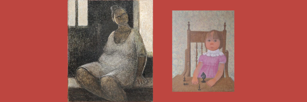 El primer cuadro es una técnica mixta sobre tela, sobre perfocel, de 24 x 20, de 2018. Siguiente imagen: los familiares del muralista consideran que este cuadro sobre su hermana pequeña de nombre Esperanza inspiró la obra inconclusa. (Fotografías: cortesía de Antonio González Arriaga)