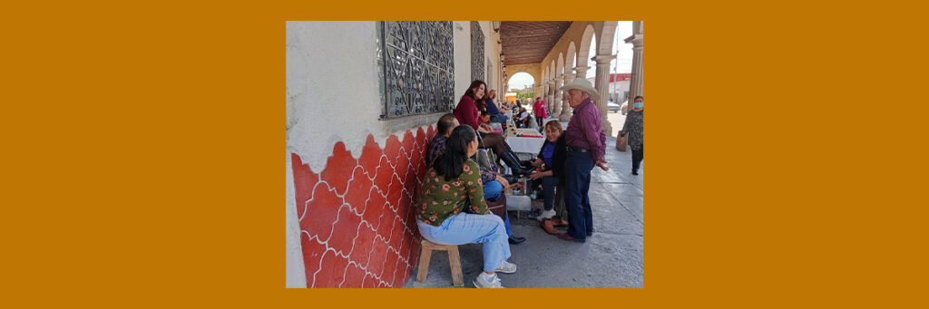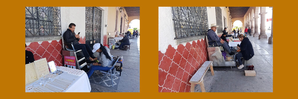 En uno de los portales de esta población se percibe una imagen no común: hay tres mujeres que asean el calzado. Sólo un varón complementa la cuarteta. Se trata de María del Socorro Arvizu, Sonia Olvera y María Emilia Campuzano.