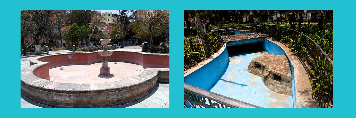 Las descuidadas fuentes de Tepetapa y de la ex estación del ferrocarril.