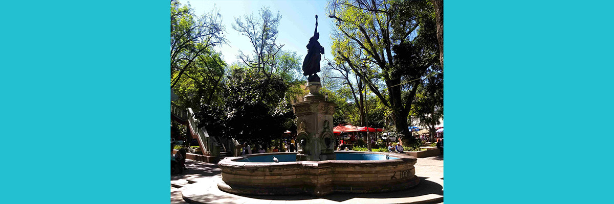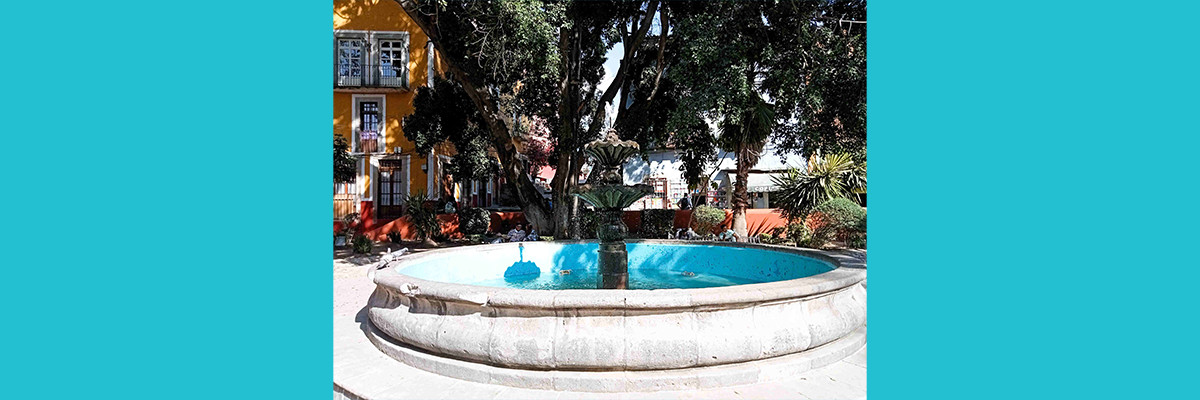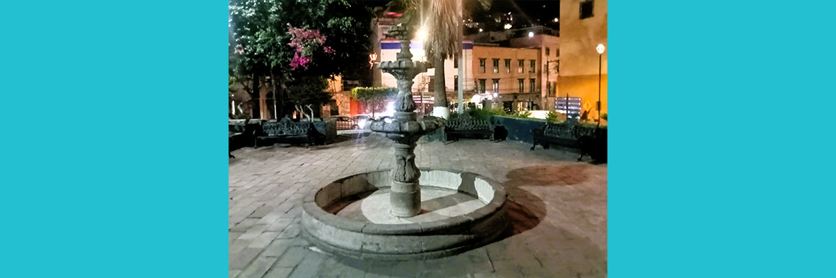 No obstante, basta dejar el núcleo de la ciudad para que la sequedad y el abandono vuelvan por sus fueros en distintos rumbos. Y no es necesario ir muy lejos. Sobre la calle Alhóndiga, en un jardincito escondido, a un costado del túnel de Tamazuca, existe una fuente también pequeña —carente de líquido— que adorna un espacio ideal para hacer un alto en el camino, al estar oculto de las miradas de los peatones y rodeado de árboles, si no muy altos, sí frondosos.