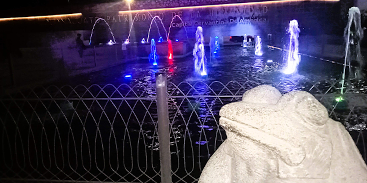 Muy diferente se ve la más moderna fuente de la Plaza Miguel Hidalgo, rodeada por múltiples esculturas de ranas, a unos metros de “Los Pastitos”, remodelada no hace mucho y dotada de un juego de luces que la hacen ver espectacular, sobre todo por las noches, aunque en los últimos tiempos el gobierno local parece querer ahorrar en energía eléctrica y solo la pone en marcha ocasionalmente. Una lástima, pues ofrece una vista sin parangón.