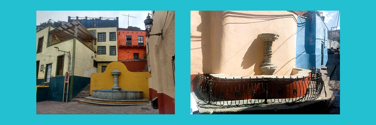 Guanajuato, ciudad predominantemente barroca, fue salpicada con numerosas plazuelas cuyos espacios, en un inicio vacíos, fueron posteriormente aprovechados para colocar fuentes con un propósito principal: dotar de agua a la población, una vez instalada la red de distribución subterránea en lo que ahora es el centro histórico. El uso estético fue un plus complementario de la peculiar, abigarrada arquitectura del asentamiento, a ambos lados de la cañada.