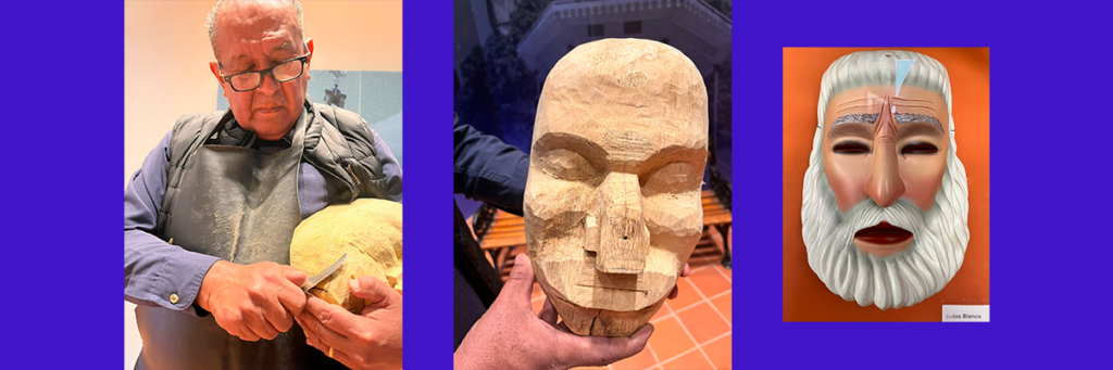 Durante más de cuatro décadas, Bernabé Reyes López ha tallado los ocho personajes que dan vida a la representación. En su taller, la madera de colorín toma forma hasta convertirse en Judas, Diablo Mayor o el Tiempo. Su labor no se limita a producir máscaras; también enseña.