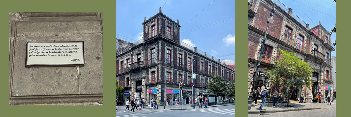 Uno de esos palacios es el que ocupó el Conde José Justo Gómez de la Cortina, personaje destacado en la historia del país. Nacido el 9 de agosto de 1799, en la Ciudad de México, fue un aristócrata, diplomático, escritor, político y académico. Vivió en la actual calle de República de Uruguay número 94, en una casa, construida en 1781, hermoso ejemplo de la arquitectura civil para la clase pudiente del siglo XVIII.