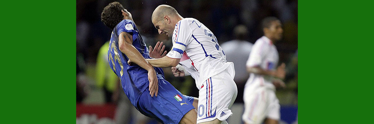 Llegó entonces el punto de quiebre, protagonizado coincidentemente por los dos anotadores: mientras el balón estaba en juego, al parecer Materazzi dijo algunas ofensas a Zizou. El crack francés, que hasta entonces había brindado un gran encuentro, perdió los estribos y propinó un cabezazo en el pecho al defensor. Como era de esperarse, Zidane fue expulsado por el árbitro argentino Horacio Elizondo. Sin su mariscal, los galos dejaron de atacar y el juego se fue a serie de pénaltis, en la que Trezeguet falló un tiro decisivo. Italia ganaba así cuarto título mundial, en un campeonato poco brillante, con bajo promedio de goles, muchas tarjetas y crecientes críticas al arbitraje.