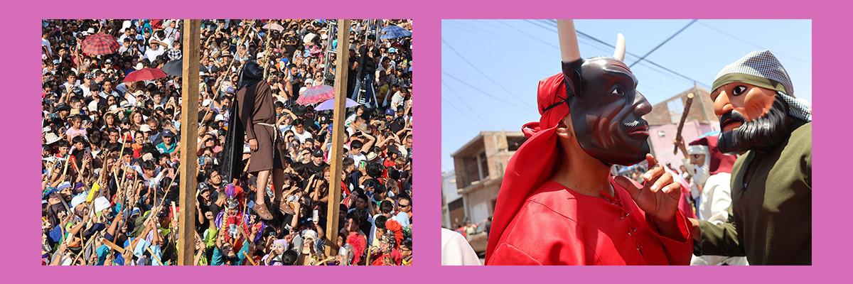 Las máscaras, elaboradas por manos locales, representan personajes como Judas, diablos y figuras simbólicas de la Semana Santa.