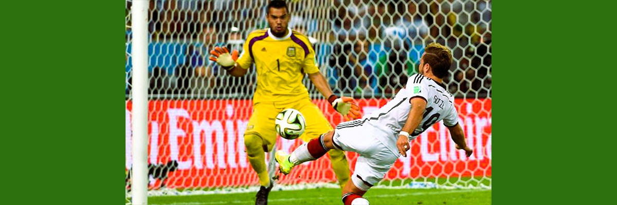 El partido se fue a tiempo suplementario, donde continuaron las emociones de uno y otro lado, hasta que, a los 113’, el recién ingresado Götze recibió un balón dentro del área, lo mató con el pecho y, sin dejarlo caer, soltó un zurdazo que se incrustó a la izquierda del portero argentino Sergio Chiquito Romero. Aunque abatidos, los pamperos no dejaron de insistir, mas no pudieron empatar.