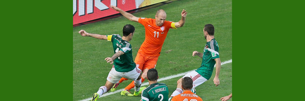 Entonces Arjen Robben y el árbitro se robaron el espectáculo. Ya en tiempo de compensación, el neerlandés disputó una pelota en el área azteca, que Márquez intentó detener. Apenas sintió el pie del defensa mexicano, el delantero se dejó caer cuan largo es, el silbante portugués Pedro Proenca se tragó el cuento y marcó penal, que Huntelaar hizo efectivo: 2-1. La polémica fue monumental. La frase “no era penal” quedó grabada con fuego por la dolorosa eliminación tricolor y hasta la fecha es motivo de discusión. Hay quienes aseguran que sí hubo falta, pero los videos no son concluyentes. Jugadas como esa conducirían a la FIFA a la creación del video arbitraje, el ahora famoso VAR.