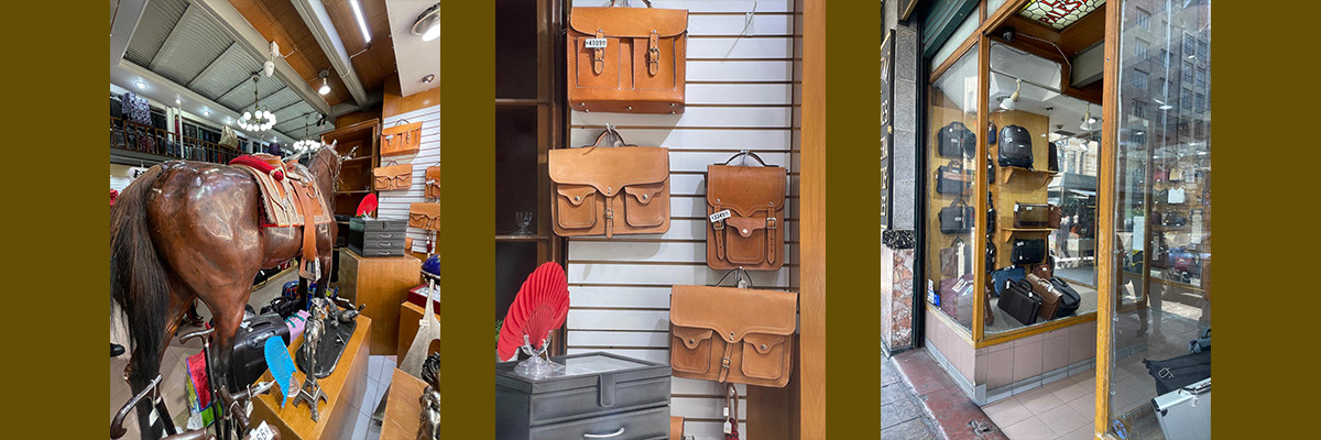 La identidad del establecimiento se ve en el enorme caballo de tamaño natural que luce sereno en uno de sus aparadores, junto a artículos de la marroquinería urbana, la tradición talabartera, y productos personalizados. Llaman poderosamente la atención las mochilas de vaqueta amarilla, “para niños ricos”, tan anheladas en los años 60 del siglo pasado.