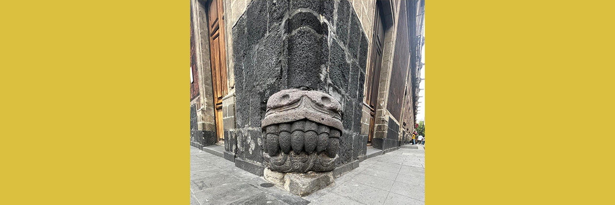 Sin embargo, su presencia remite a un pasado más antiguo que el propio inmueble que la contiene, a una ciudad superpuesta, donde vestigios prehispánicos fueron reutilizados como cimiento material y simbólico de la arquitectura novohispana. La escultura, que evoca una mandíbula o un mascarón de rasgos zoomorfos, parece custodiar esa esquina.